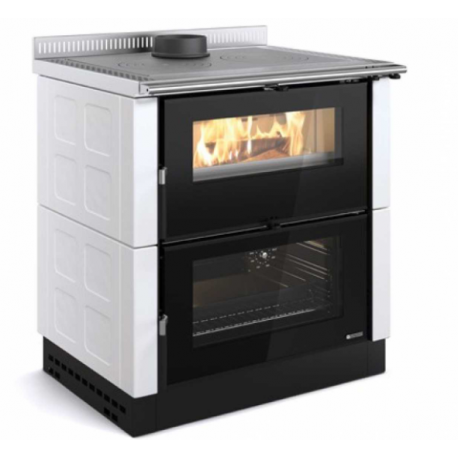 Holzofen Gusseisen und Weiße Unendlichkeit Verona XXL 7kW mit 61L Backofen.