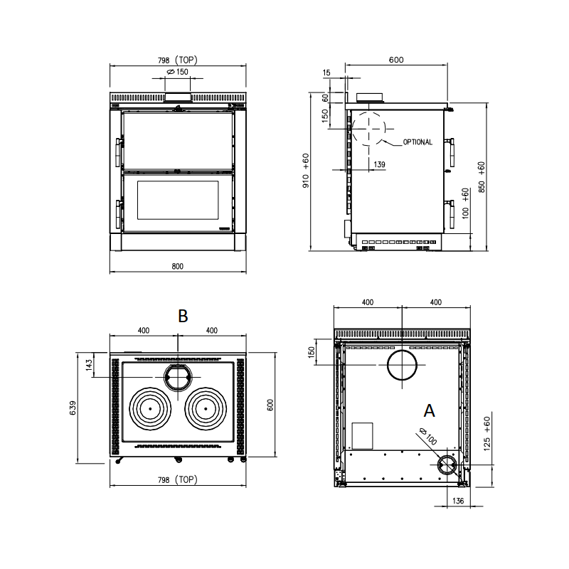 Verona XXL 7kW 7kW Herd aus Gusseisen und Edelstahl mit 61L Backofen.