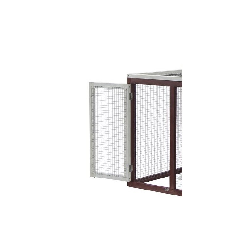 Eine 25 x 40 cm große Maschentür neben der Voliere ermöglicht es den Hennen, nach draußen zu gehen und den Hof oder Garten zu genießen.