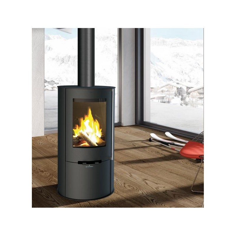 Beheiztes Volumen: 235m3- Wirkungsgrad 76% - Hergestellt aus Gusseisen und Stahl - Vermiculit-Innenraum - Dreifache Verbrennung und sauberes Glassystem - 1 Glastür gebogene Glaskeramik beständig gegen 750 ° C. Ausgestattet mit einem Scheiterhaufen.