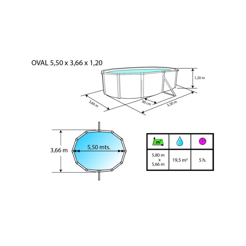 Eigenschaften des Pools 550x366xH120 cm.