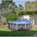 Oberirdischer Pool TOI rund Graue Steindekoration 350xH120 mit seinem kompletten Kit bereit zum Schwimmen.