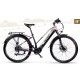 Women's electrically assisted touring bike with the top frame tube lowered for easy riding. The mid-engine suitable for long journeys on tracks and paved roads with built-in Samsung battery and equipped with a Bafang engine with a maximum range of 160 km.