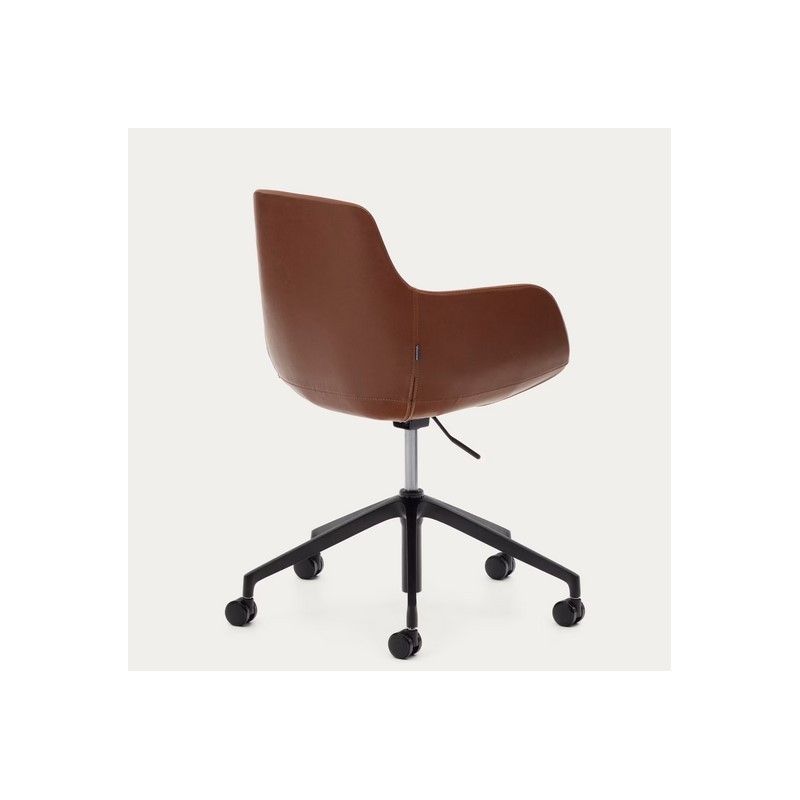 Silla de oficina Tisia VeryForma de piel sintética marrón y aluminio con acabado negro mate