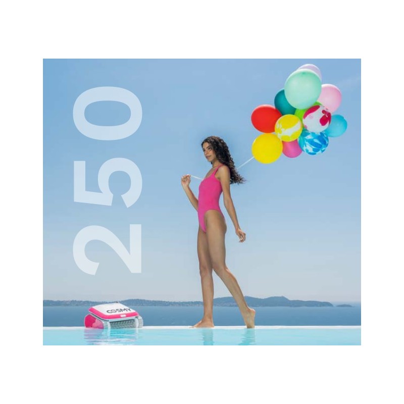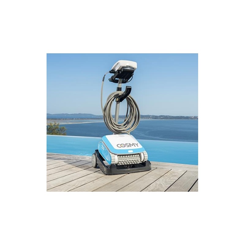 El robot eléctrico COSMY 250 BWT para una limpieza a fondo de su piscina. Ideal para la limpieza completa del fondo, paredes, línea de agua de su piscina hasta 12m.