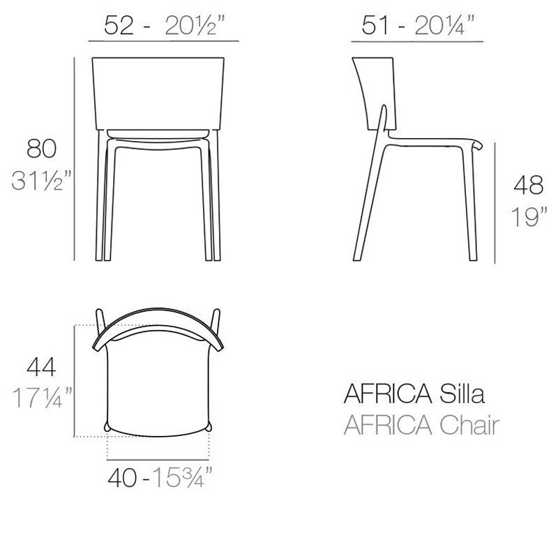 Gracias a su composición en polipropileno reforzado con fibra de vidrio, la silla Africa te ofrece muchas ventajas funcionales; es ligero, robusto, resistente a los rayos UV, al clima, a los humedales o a los ambientes clorados.