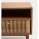 - Cajón con cuerda de papel tejida a mano y tirador de latón. Cuenta con cremalleras ocultas, un sistema de cierre silencioso y pies ajustables.