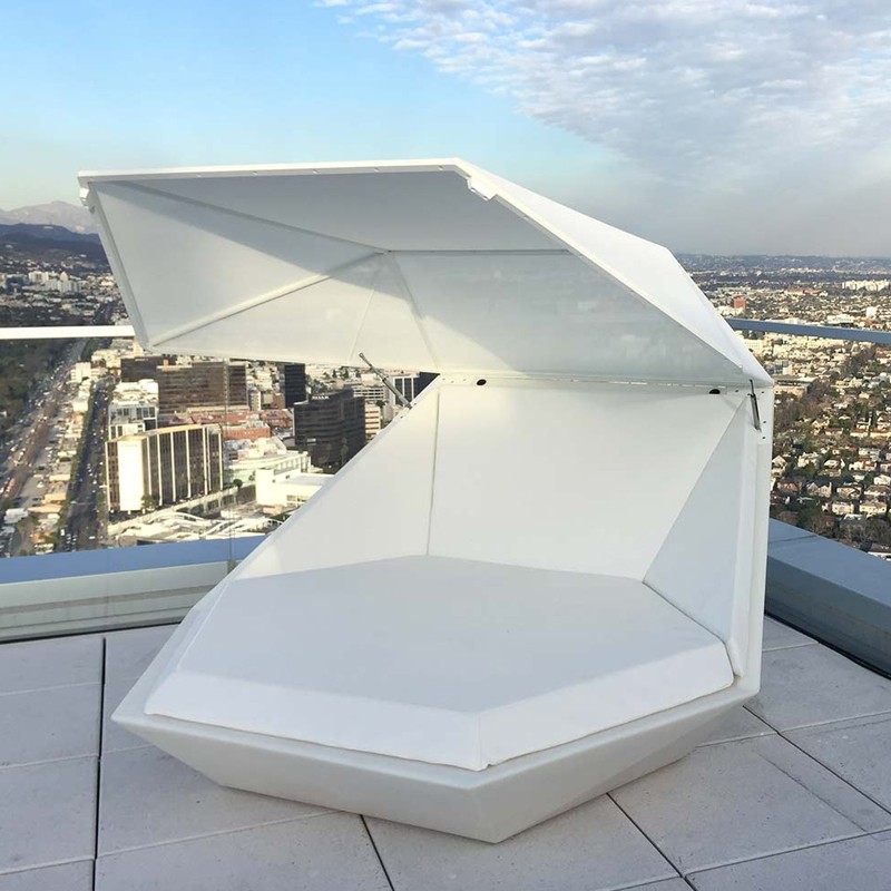 Plus qu'un simple transat, le Faz Daybed est un véritable objet design aux formes uniques et originales qui apportera une touche particulière à votre bar, restaurant ou hôtel. Pivotant sur 360°, ce fauteuil design s'orientera facilement pour suivre les rayons du soleil tout en étant protégé par le parasol. Cet auvent de protection s'ouvre et se ferme en fonction de l'intensité du soleil et de la quantité d'ombre souhaitée.
