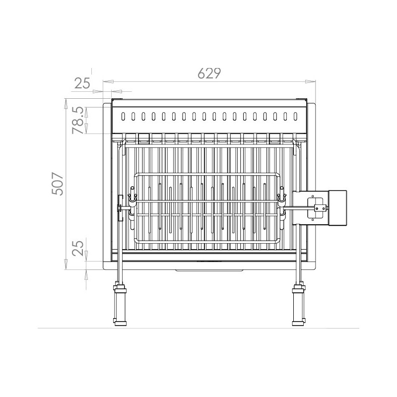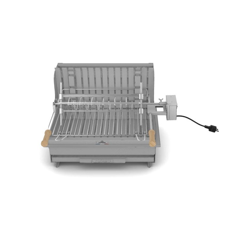 Le Mendy Griglia in Acciaio Inox con Girarrosto Incorporato 72x51, griglia L54xP32 cm regolabile su 3 livelli.