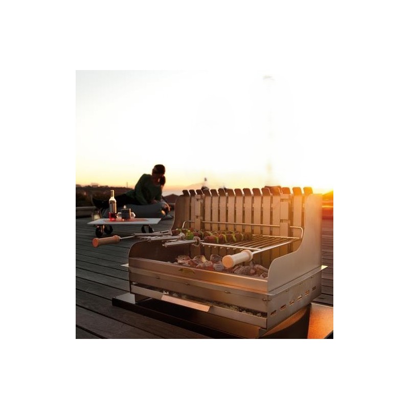 Barbecue Il marcatore Mendy Carbone incorporato in acciaio inox che resiste alla corrosione, alle intemperie, all'aria di mare ed è di facile manutenzione. La griglia 54x32 può essere integrata in un supporto o in un carrello per vivere in modo semplice e armonioso la tua cucina all'aperto.
