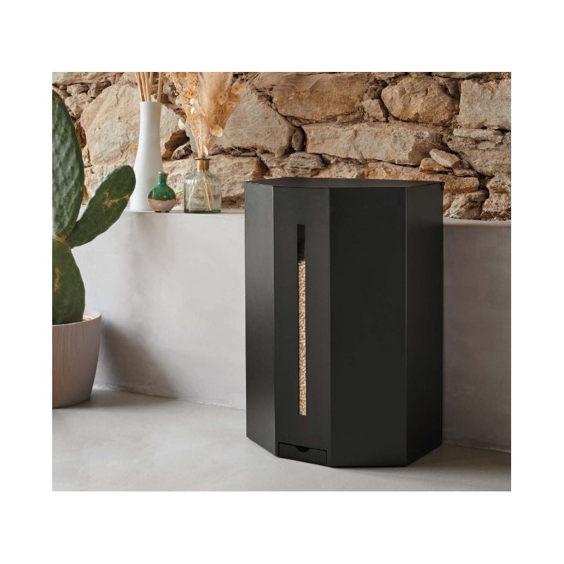 Armazenamento de pellets de madeira de quartzo com rodízios preto fosco design dezenove.