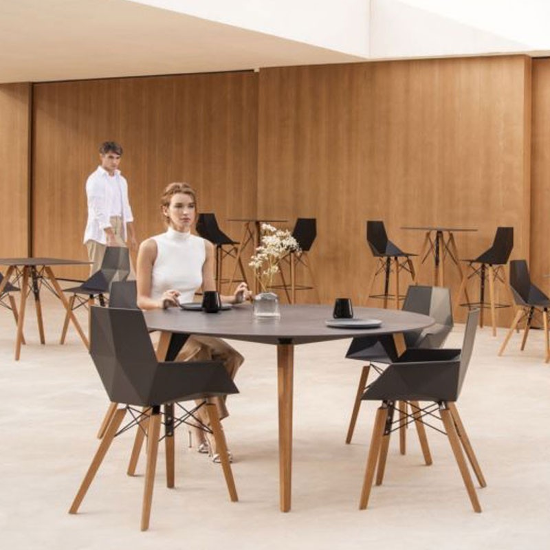 Confortável e ultra badalada, a cadeira Faz Wood projetada por Ramon Esteve para a prestigiada marca vondom, combina a modernidade do design "origami" e a sobriedade quente dos pés de carvalho. Assim dotada de uma personalidade forte, a cadeira Faz Wood traz um toque único e de alta tecnologia à sua decoração de interiores.