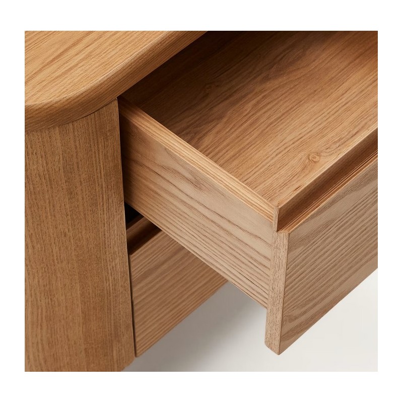 Mesa de cabeceira Saly em contraplacado de freixo FSC e pés em cama de cinzas com acabamento natural e gavetas.